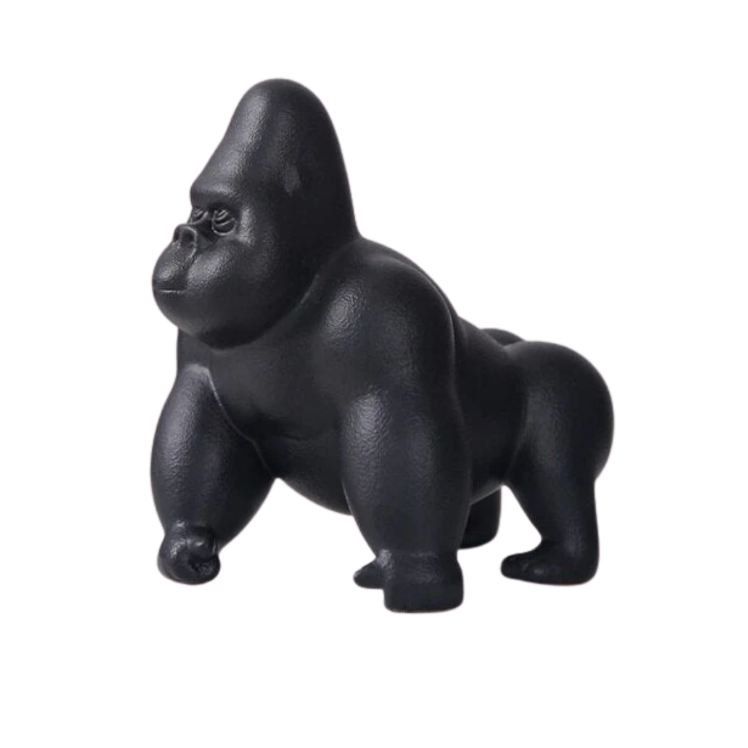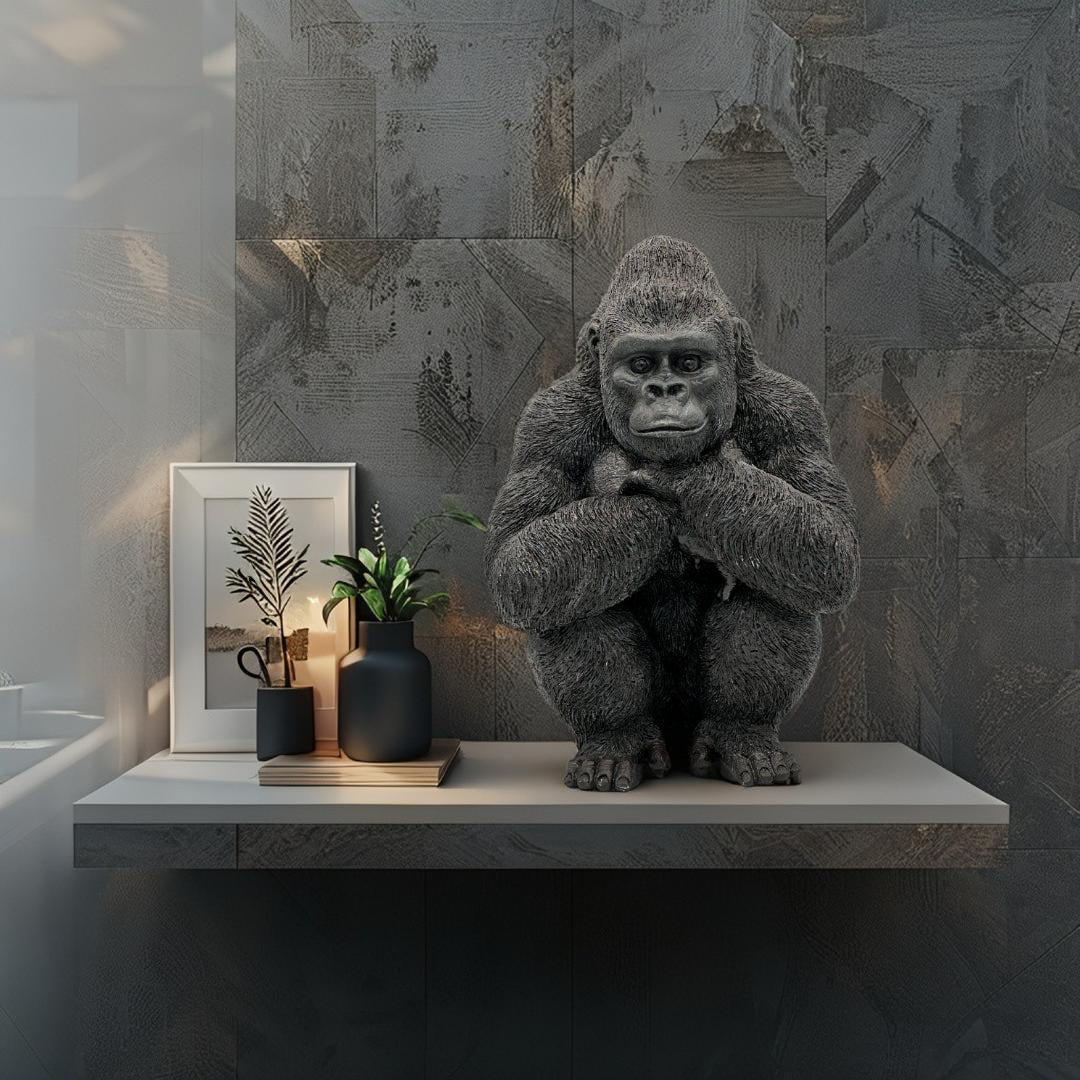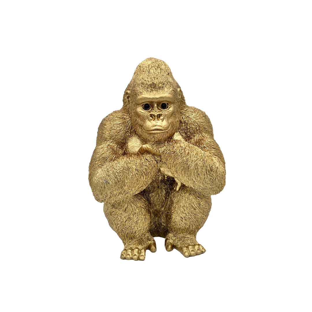 Agrega un toque audaz y sofisticado a tus espacios con esta impactante figura de gorila en acabado dorado y negro. Con un diseño detallado y realista, esta escultura representa la fuerza y serenidad del gorila en una postura contemplativa. Fabricada con materiales de alta calidad y un acabado brillante, es ideal para interiores modernos, contemporáneos o eclécticos. Perfecta para resaltar repisas, escritorios o mesas auxiliares, esta pieza combina arte y estilo con personalidad única.